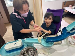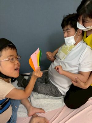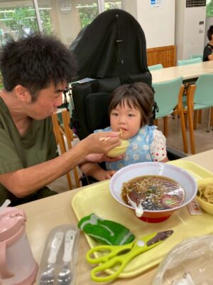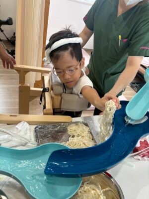 *流しソーメン:ソーメンを流す体験もしながら、手や道具を使ってすくって、お昼に食べたり、注入したりしました