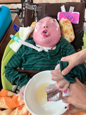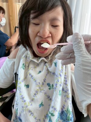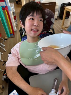 *クッキング(フルーチェつくり)グルグル、まぜまぜ、匂いを感じたりぺろりをしたり、パクパクおかわりする子もいました( ^ω^ )みんな大好きフルーチェ🍑🍓