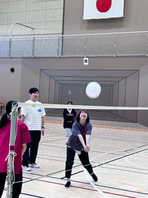 *競技は家族で協力して行いました🙌また、マツケンサンバⅡを踊っていると、スペシャルゲスト登場!みんなで踊りました〜🎶見にバレーは家族+スタッフチームと学生ボランティアチームで実施🏐子ども達は、お母さんお父さんの頑張りを応援しました📣