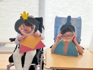 児発の児童は、お弁当のバランを使って、じぶんの顔写真入りお雛さまづくりにも挑戦しました。