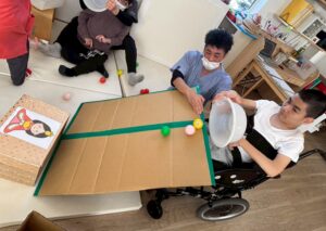 ねらいを定めて投げる動きの中で、楽しみながら身体の使い方も体験しました。