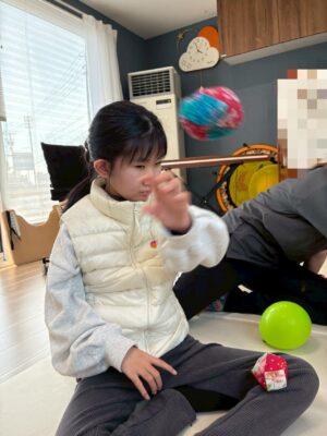 ふうせんバレーやお手玉、ボール遊びなど、身体を動かす遊びも楽しみながら🎈